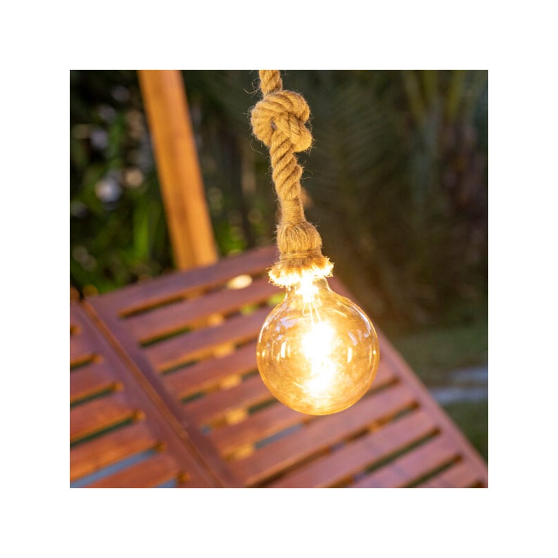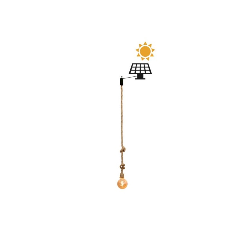SIMONA LUCE SOLARE, RICARICABILE CON SUO PANNELLO SOLARE E USB, CON TELECOMANDO ESTETICA CON CORDA DI JUTA DA 160 CM, PER GAZEBI E PERGOLE ECC. ARREDO STERNO.