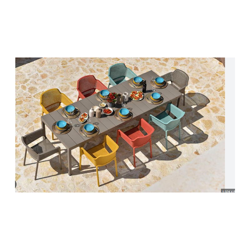 Dì addio alla manutenzione! Il tavolo Rio, con il suo piano in polipropilene trattato anti-UV e colorato in massa, è facilissimo da pulire e mantenere. La struttura in alluminio verniciato è resistente alla corrosione e agli urti. Grazie ai piedini regolabili, puoi posizionarlo su qualsiasi superficie, anche irregolare. Allungabile e versatile, Rio è la scelta ideale per chi cerca un tavolo pratico e funzionale."