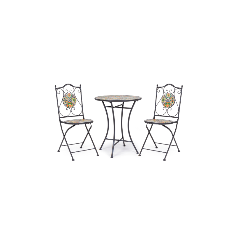 • Resistenza agli agenti atmosferici: Grazie ai trattamenti e ai materiali utilizzati, il set è adatto per essere posizionato all'aperto, resistendo a pioggia, sole e sbalzi di temperatura.
